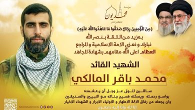 (مِّنَ الْمُؤْمِنِينَ رِجَالٌ صَدَقُوا مَا عَاهَدُوا اللَّهَ عَلَيْهِ) ” بمزيد من الثقة بنصر الله نبارك ونعزي الأمة الإسلامية والمراجع العظام أعلى الله مقامهم بشهادة المجاهد الشهيد القائد محمد باقر المالكي