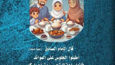 قال الإمام الصادق (علية السلام) ” أطيلوا الجلوس على الموائد، فإنها ساعة لا تُحسب من أعماركم “
