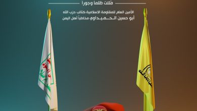 الامين العام للمقاومة الاسلامية كتائب حزب الله ابو حسين الحميداوي مخاطباً اهل اليمن :أحبتي أخوتي في أنصار الله والشعب اليمني الشقيق، أحباء الله ونجبائه، أن همكم همنا وجراحكم جراحنا، ومعاً سنحقق وعد الله الموعود وأمل المستضعفين المنشود مع إمام عادل يملأ الأرض قسطاً وعدلاً بعدما مُلئت ظلماً وجوراً