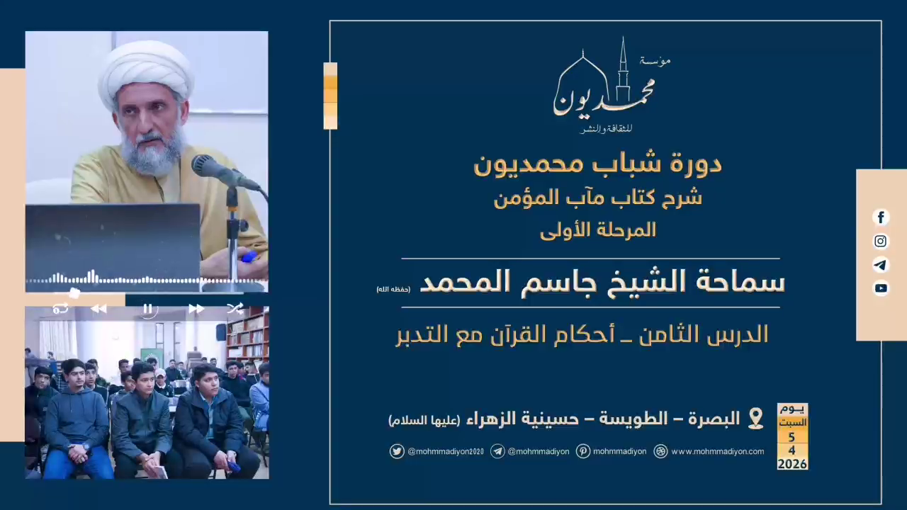 دورة شباب محمديون / المرحلة الأولى الدرس السابع / أحكام القرآن مع التدبر مع الشيخ / جاسم المحمد (حفظه الله)