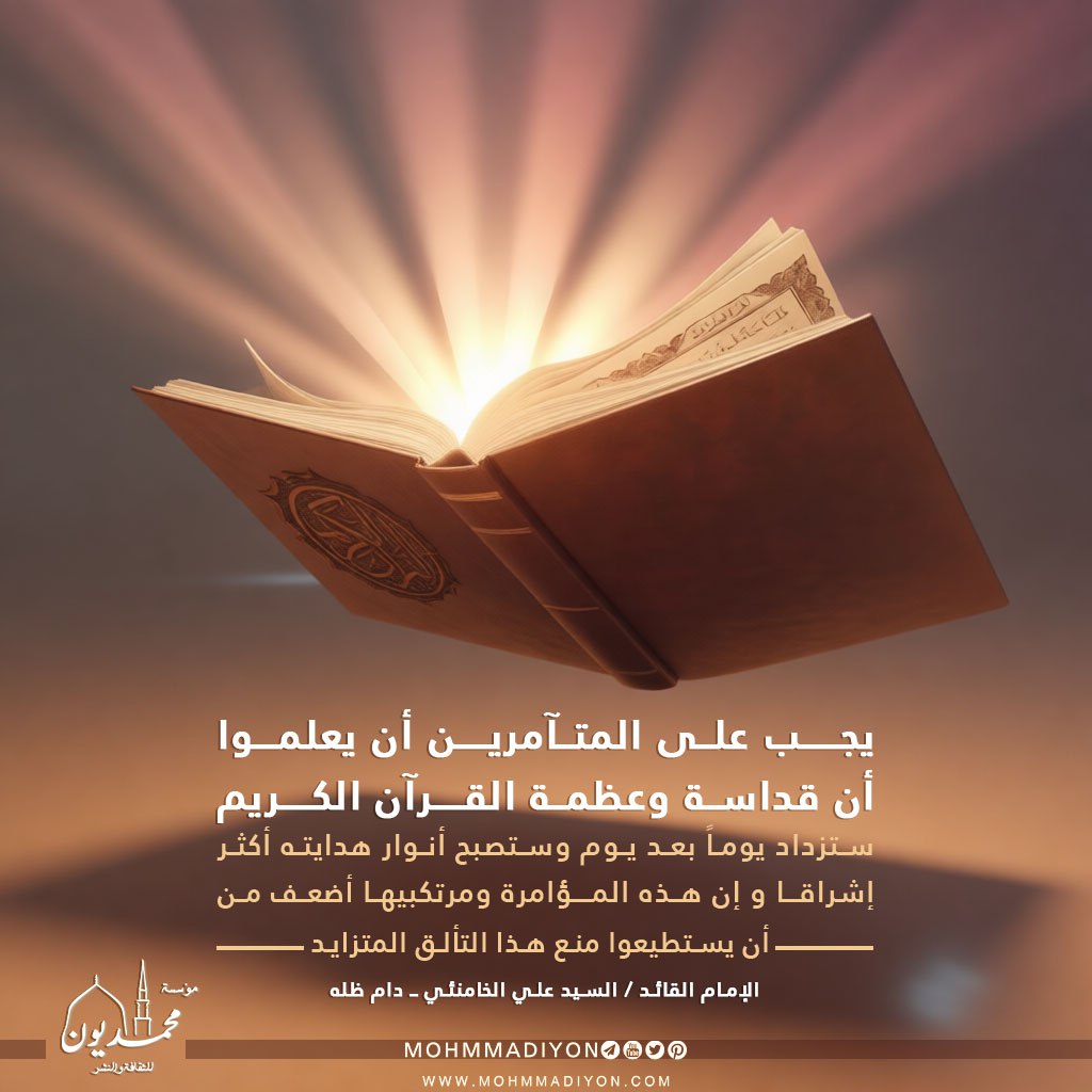 “يجب على المتآمرين أن يعلموا أن قداسة وعظمة القرآن الكريم ستزداد يوماً بعد يوم وستصبح أنوار هدايته أكثر إشراقاً، و إن هذه المؤامرة ومرتكبيها أضعف من أن يستطيعوا منع هذا التألق المتزايد.”