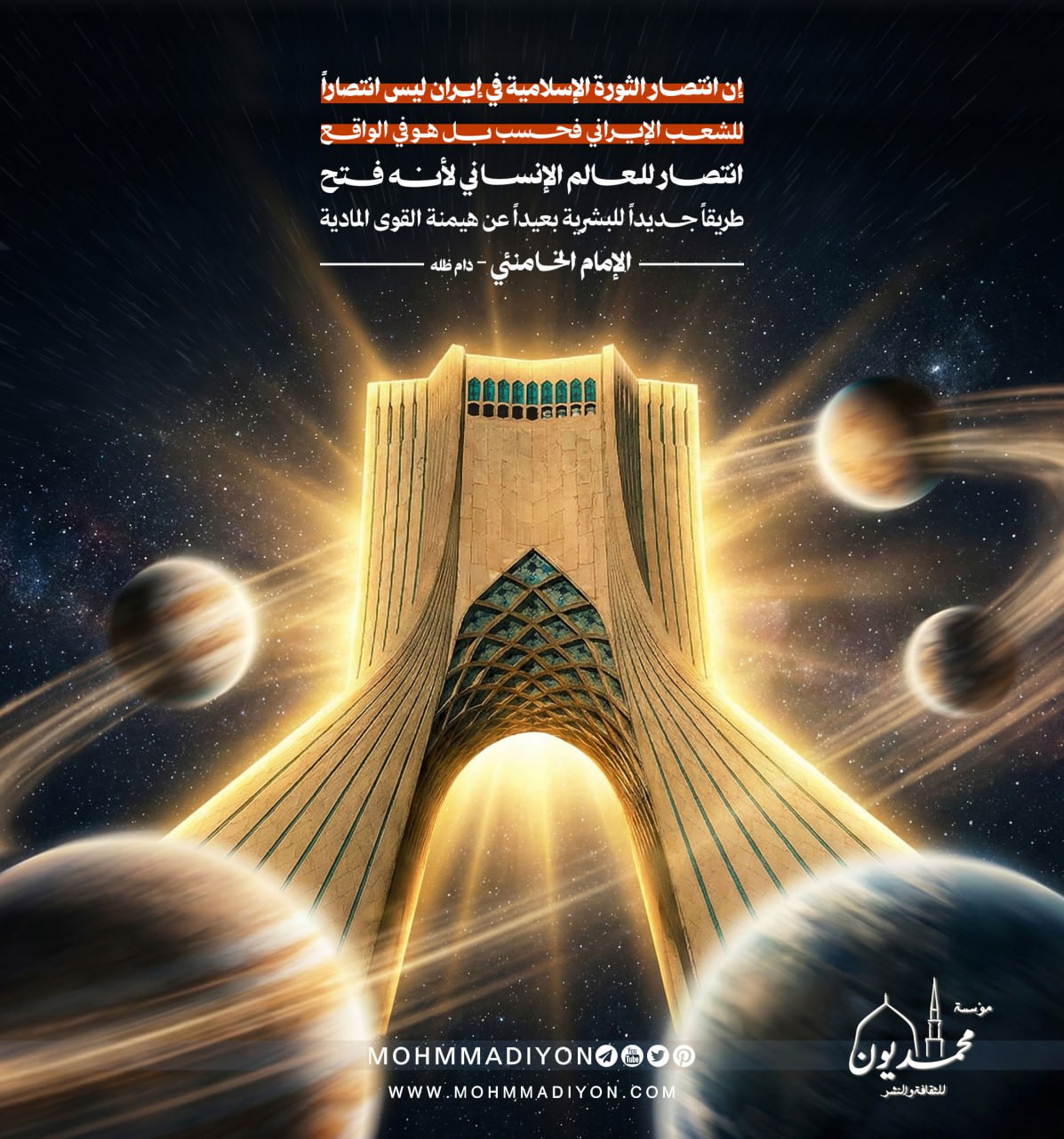 “إن انتصار الثورة الإسلامية في إيران ليس انتصاراً للشعـب الإيراني فحسب بل هـو في الواقع انتصار للعالم الإنساني لأنه فتح طريقاً جديداً للبشرية بعيداً عن هيمنة القوى المادية”