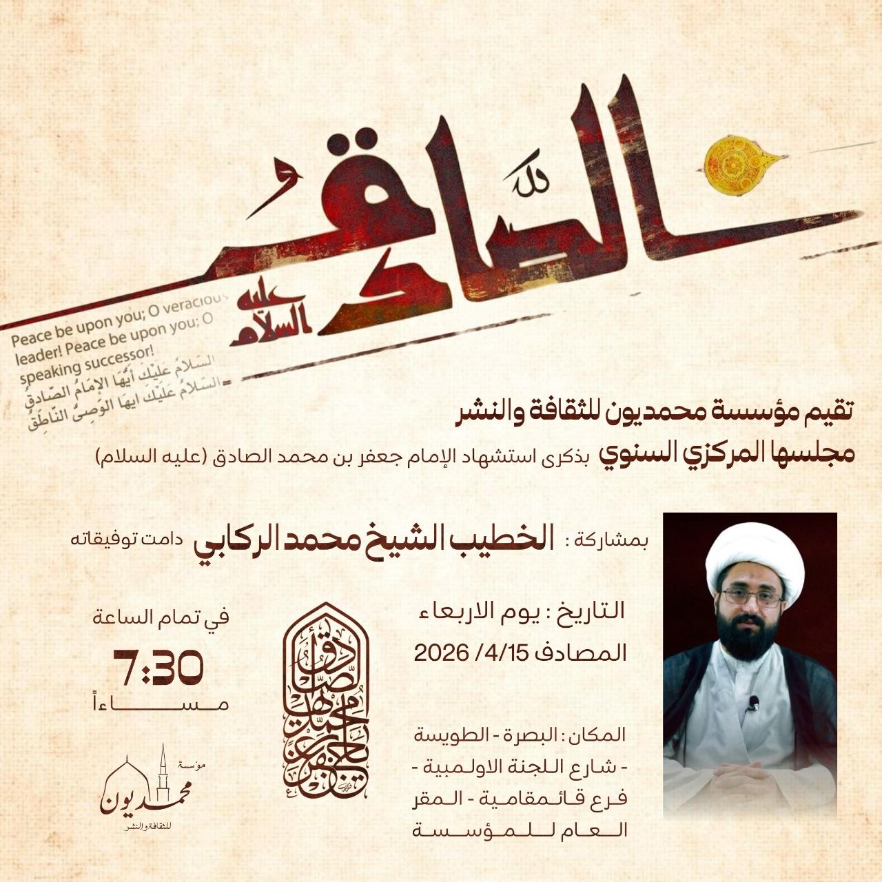 تقيم مؤسسة محمديون للثقافة والنشر مجلسها المركزي السنوي بذكرى استشهاد الإمام جعفر بن محمد الصادق (عليه السلام)