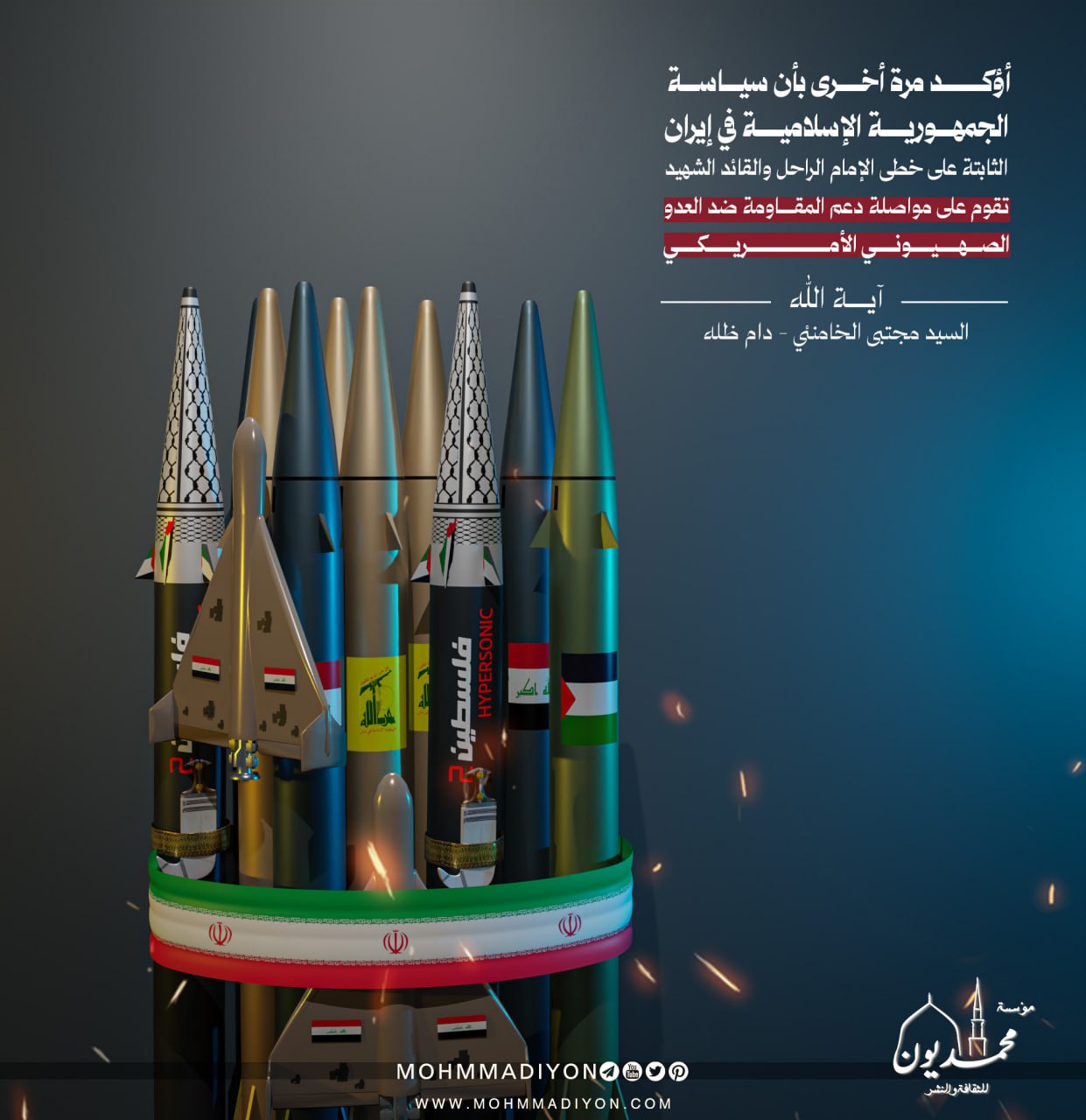 أؤكد مرة أخرى بأن سياسة الجمهورية الإسلامية في إيران، الثابتة على خطى الإمام الراحل والقائد الشهيد، تقوم على مواصلة دعم المقاومة ضد العدو الصهيوني الأمريكي.