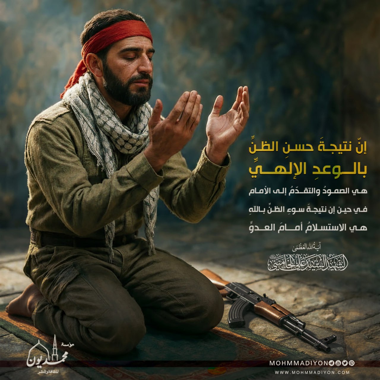 ” إنّ نتيجةَ حسنِ الظنِّ بالوعدِ الإلهيِّ هي الصمودُ والتقدّمُ إلى الأمام في حين إن نتيجةَ سوءِ الظنِّ باللهِ هي الاستسلامُ أمامَ العدوِّ “