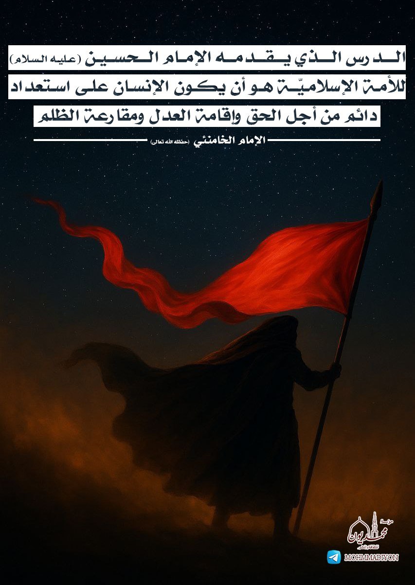 “الدرس الذي يقدمه الإمام الحسين (عليه السلام) للأمة الإسلامـيّـة هو أن يكون الإنسان على استعداد دائم من أجل الحق وإقامة العدل ومقارعة الظلم”